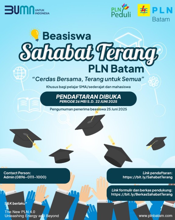“Melalui program Beasiswa Sahabat Terang, kami ingin mengajak generasi muda untuk tidak hanya cerdas secara akademik, tetapi juga memiliki semangat kontribusi bagi masyarakat. Ini adalah bagian dari tanggung jawab sosial PLN Batam untuk menebar terang di berbagai aspek kehidupan,” ujar Zulhamdi.