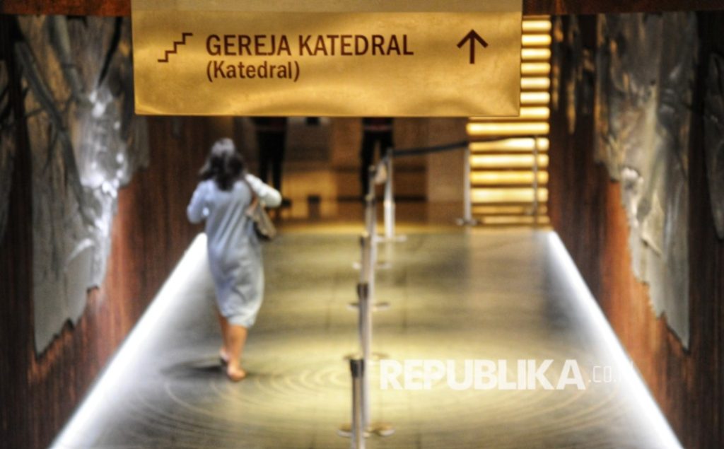 Umat Kristiani melintas di Terowongan Silaturahim Masjid Istiqlal – Gereja Katedral, Jakarta. (Foto: Republika)