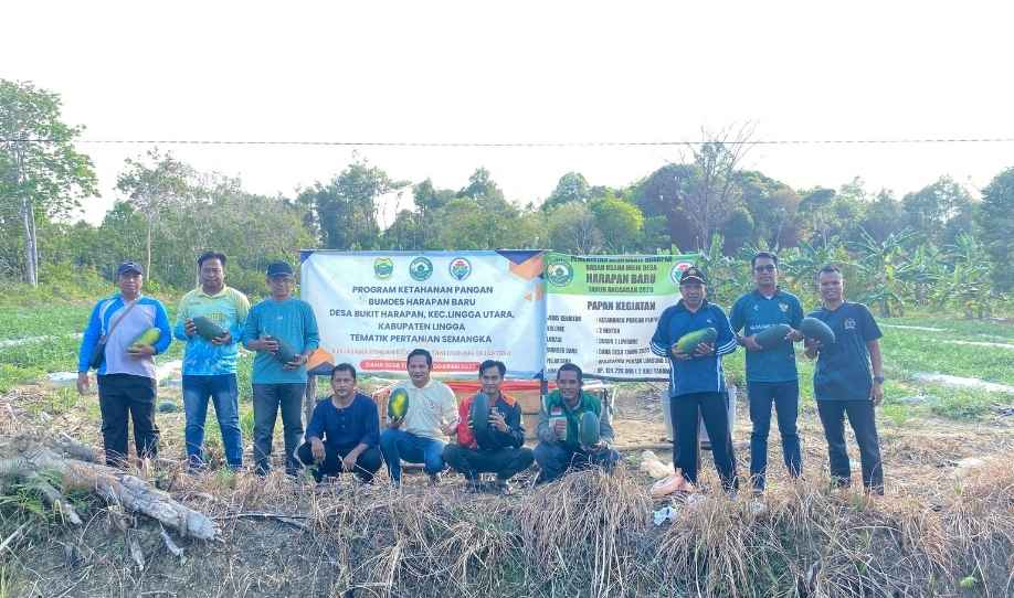 J5NEWSROOM.COM, Lingga – Sebagai bentuk dukungan terhadap Program Ketahanan Pangan Nasional, Badan Usaha Milik Desa (BUMDes) Harapan Baru, Desa Bukit Harapan, Kecamatan Lingga Utara, Kabupaten Lingga, menggelar panen perdana semangka, Sabtu (14/2/2026). Kegiatan ini menjadi tonggak awal keberhasilan implementasi program ketahanan pangan di tingkat desa.