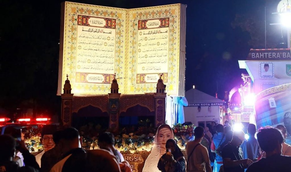 Dari replika masjid yang megah, kapal yang sarat makna perjalanan, hingga sosok naga hitam yang atraktif, seluruh peserta tampil memukau. Warga pun memadati sisi jalan sejak titik awal di Dataran Engku Putri, larut dalam suasana syukur menyambut Hari Raya Idul Fitri 1447 Hijriah.