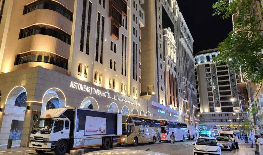 Hotel Aston International Madinah tempat menginap rombongan jemaah haji Kloter 4 Embarkasi Palembang. (Foto: Saibansah/J5NEWSROOM.COM)